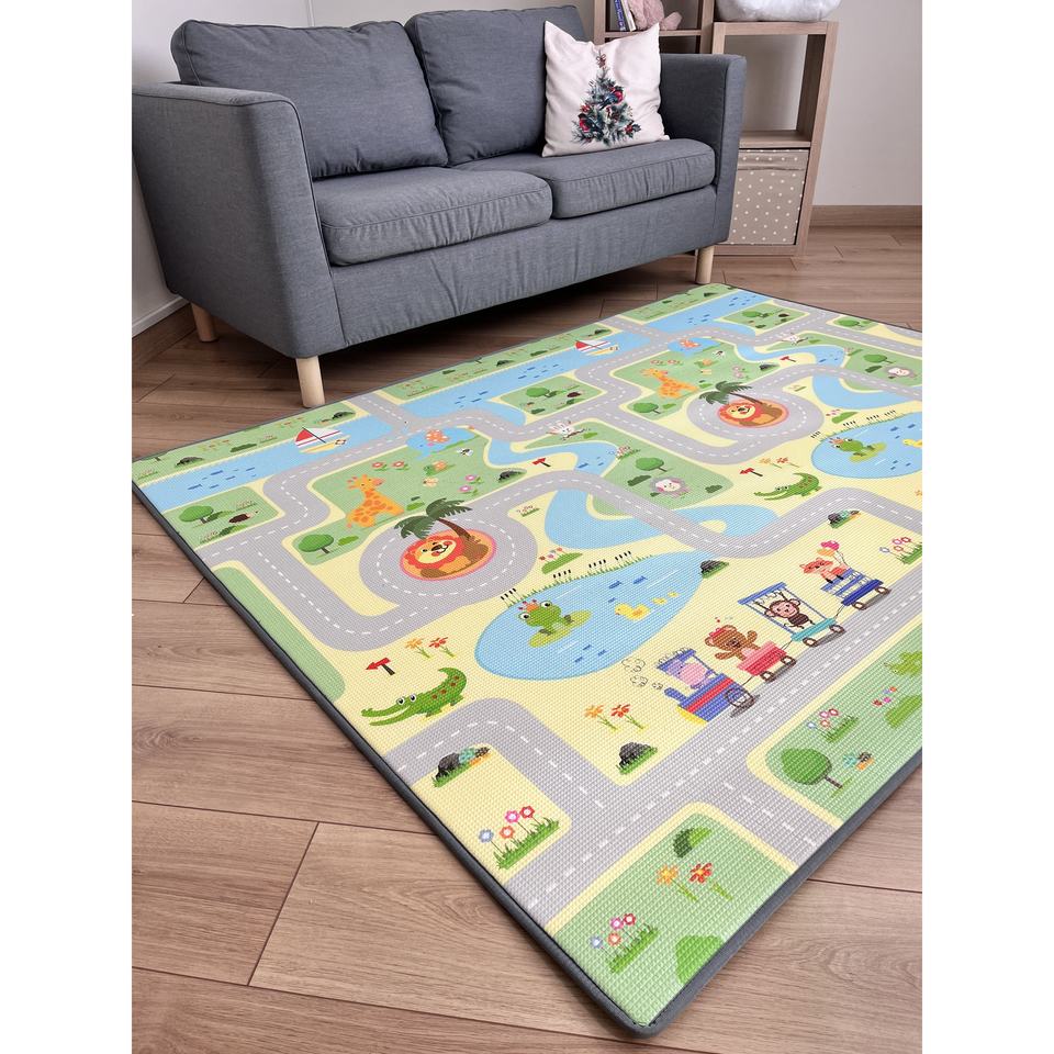 Alfombrilla de juego para bebés XPE de doble cara de 100x140x0,8 cm, alfombrillas de juego impermeables no tóxicas con estrellas verdes