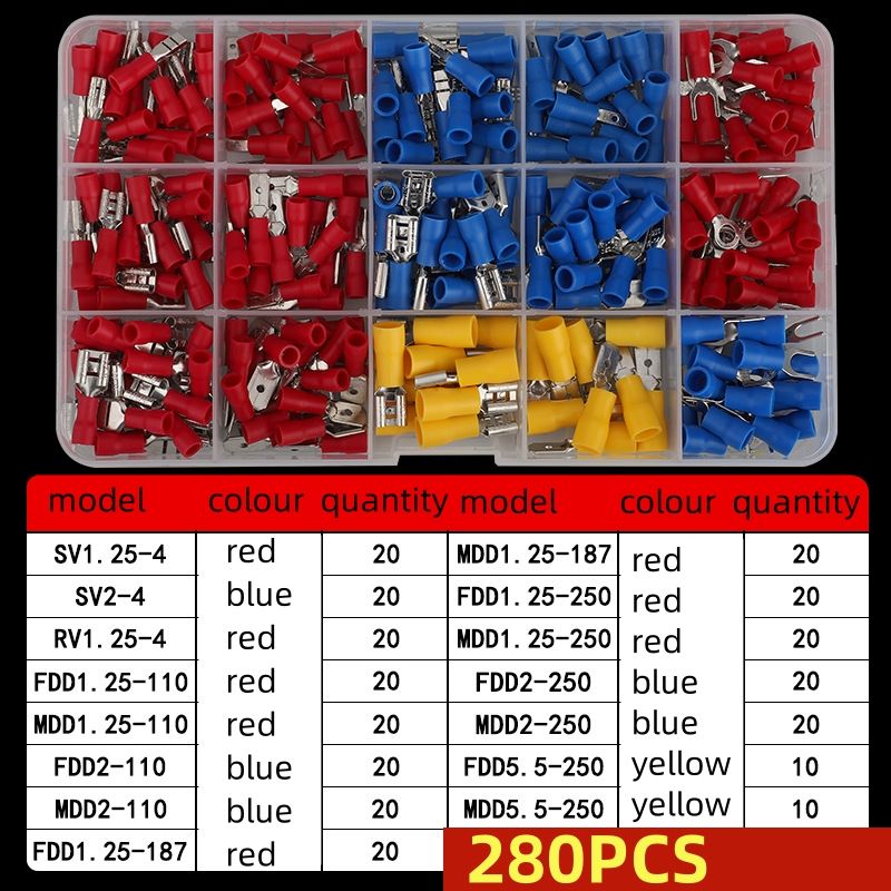 Kit de Terminales de Crimpado de 102/200/280 Piezas - Surtido de Conectores de Cobre Preaislados (Rojo/Azul/Amarillo) 22-10 AWG al por Mayor