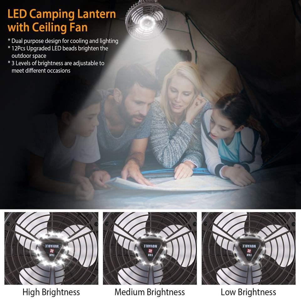 Lámpara LED Portátil de 10400mAh con Ventilador Recargable, Trípode, Linterna Colgante para Tienda de Campaña, Plegable y Oscilante, para Iluminación Exterior