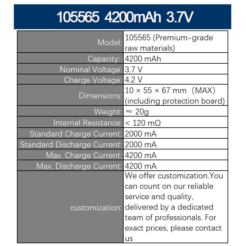 10*55*67mmTamaño de la batería