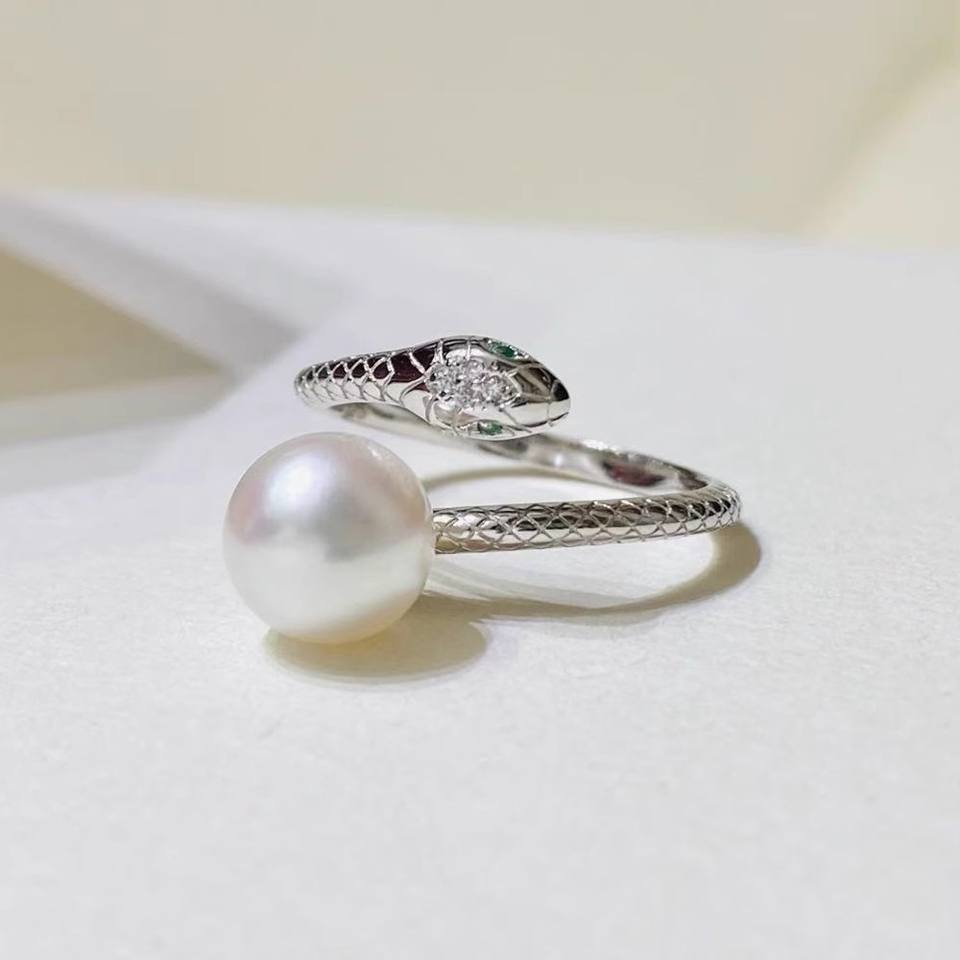 Anillo de Plata de Ley S925 10591DIY con Cuentas Redondas de 10-12 mm, Soporte Vacío para Anillo de Serpiente Espiritual, Perla, Accesorios 100% Auténticos