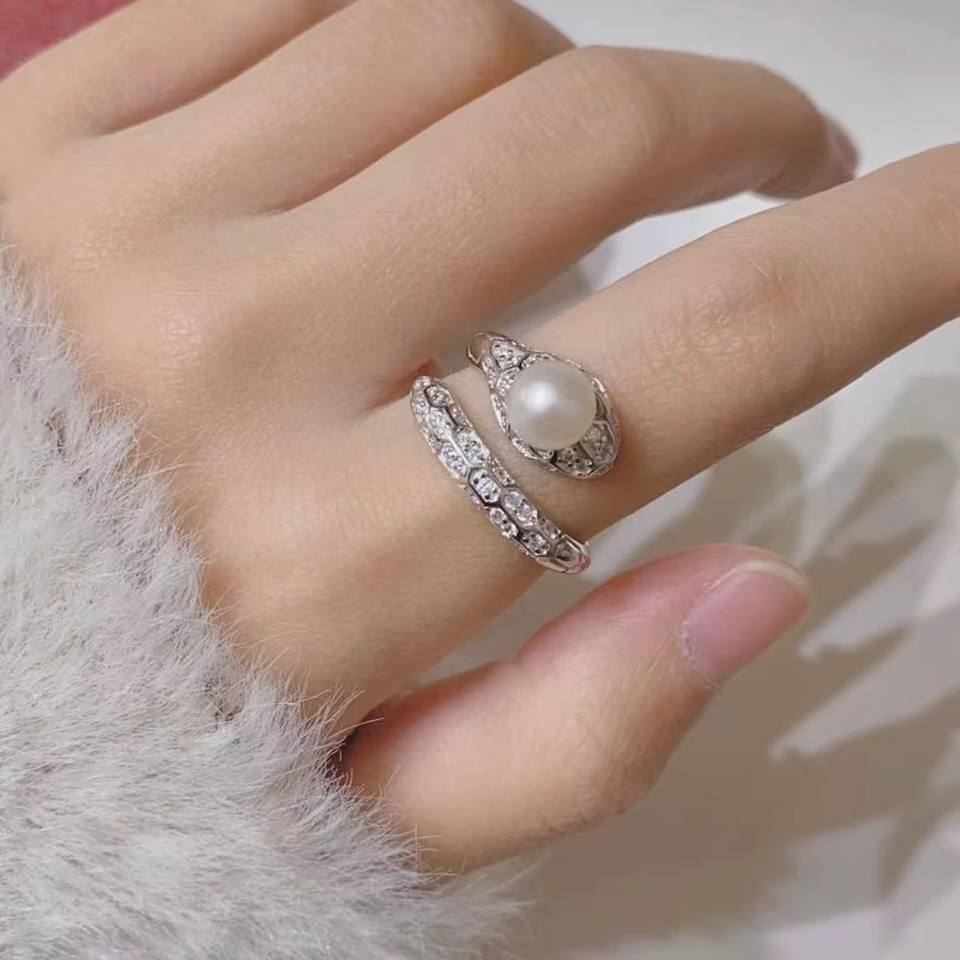 Anillo de Plata S925 con Soporte Vacío para Perlas, Estilo Serpiente, para Incrustar Perlas Redondas de 10-13mm, Modelo 10598DIY