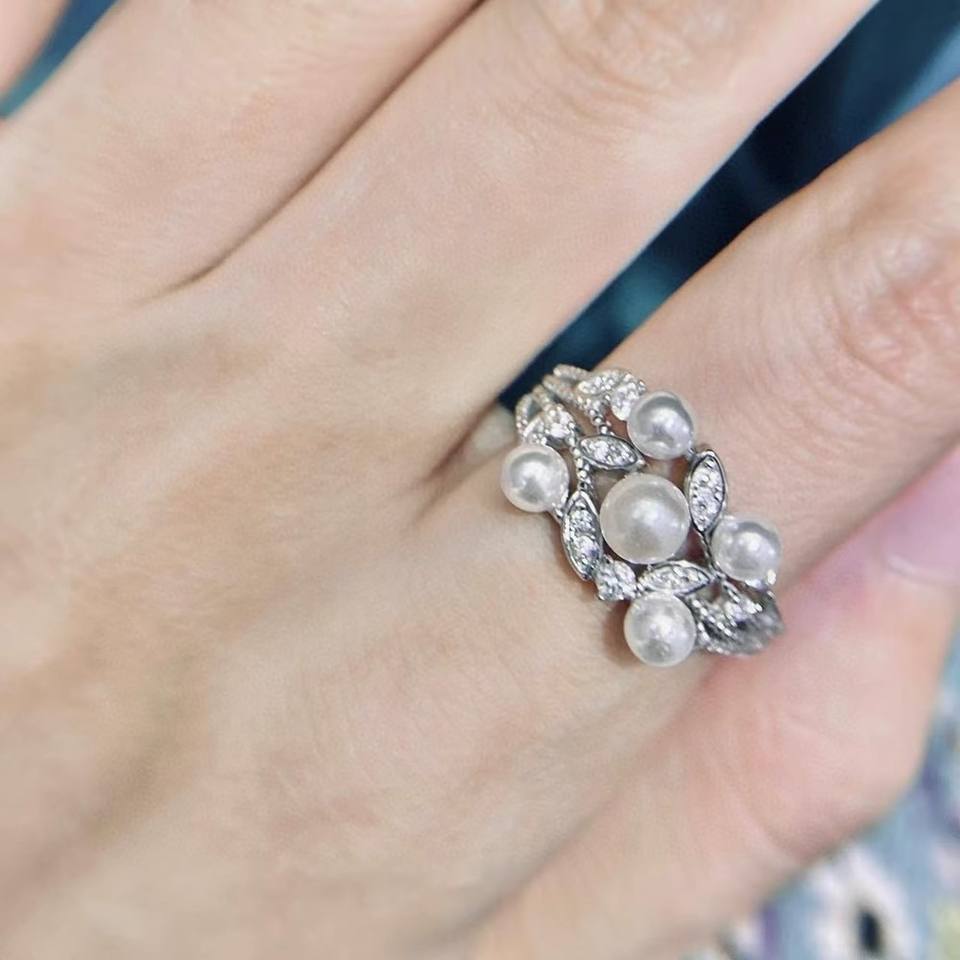 Juego de Joyería de Plata DIY 10637, Anillo de Plata S925 con Cuentas Redondas de 10-13 mm, Edición Ligera, Accesorios de Perlas, Estilo de Incrustaciones de Moda