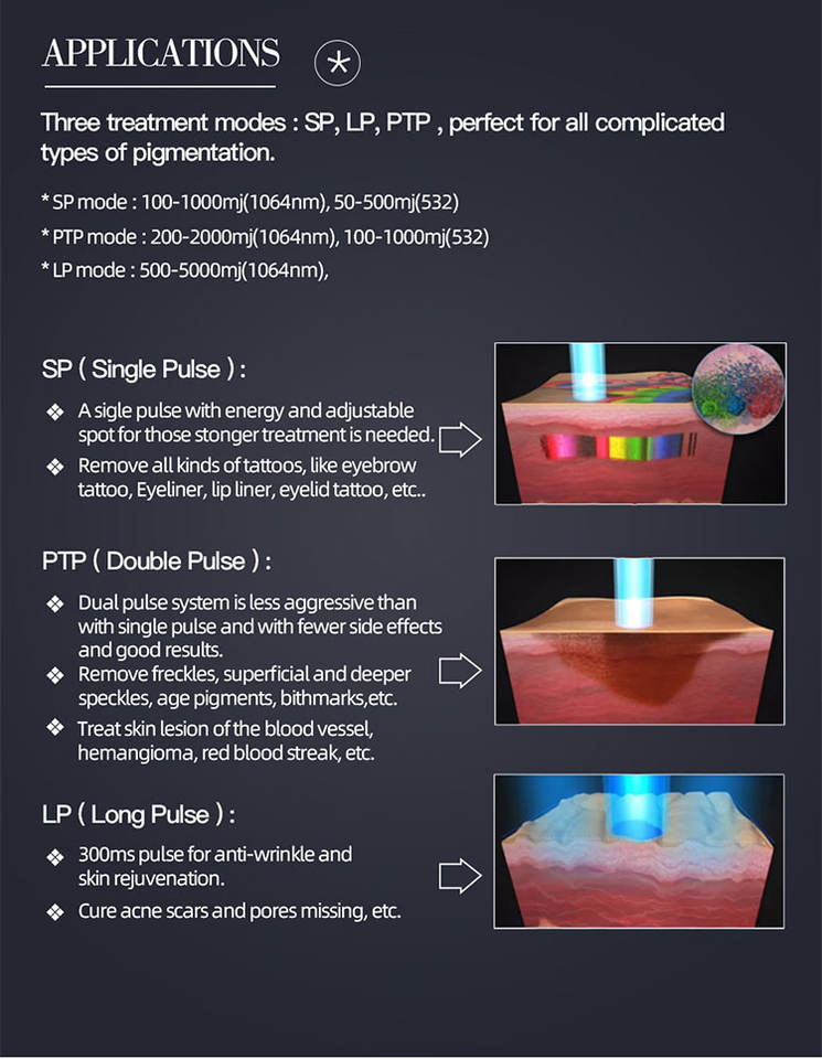 Eliminación de pigmentos, Blanqueador, Rejuvenecimiento de la piel, Correctores de pigmentación, Eliminación de tatuajesCaracterística