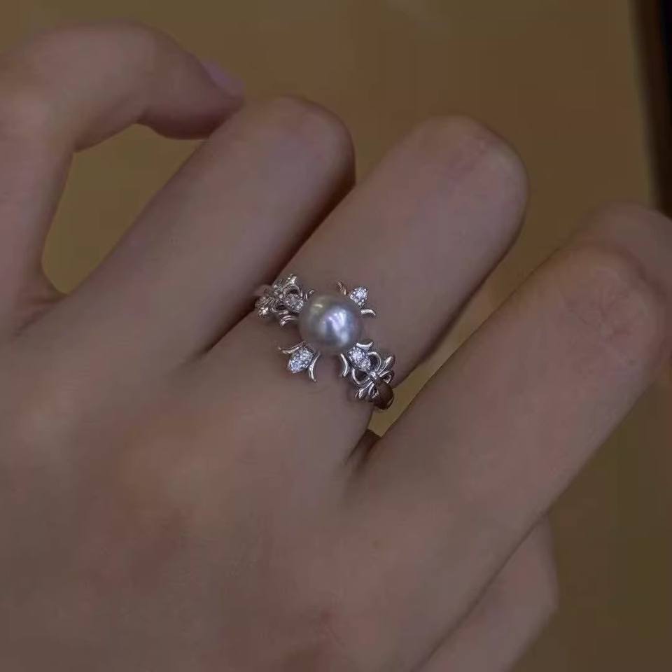 10675 Accesorios de Perlas DIY, Anillo de Plata S925 de Moda con Soporte de Cola de Pez, Incrustaciones de Perlas Redondas de 7-9 mm
