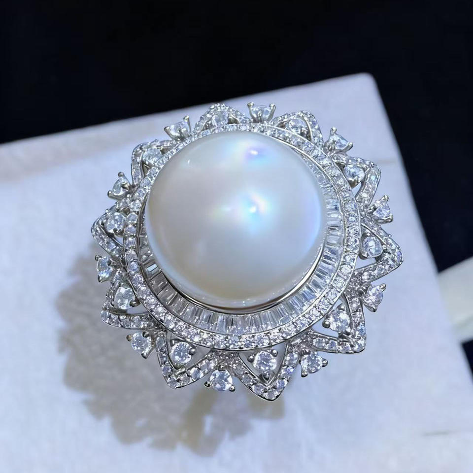 Anillo de Plata S925 10740, Accesorio de Moda para Mujer, con Incrustaciones de Perlas de 10-13 mm y Tecnología de Garra
