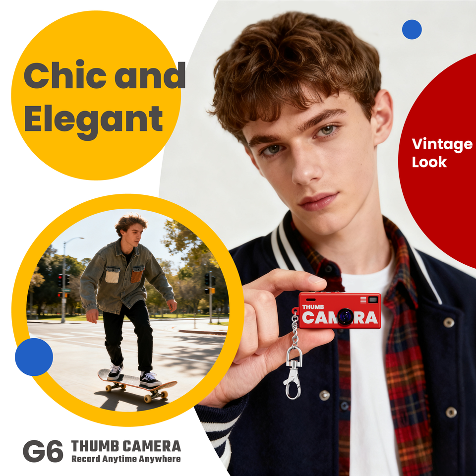 Mini Cámara Retro CCD 1080P con Zoom Óptico 10x-20x, Gran Angular de 130°, Linterna LED, Videocámara Portátil de Bolsillo con Llavero G6