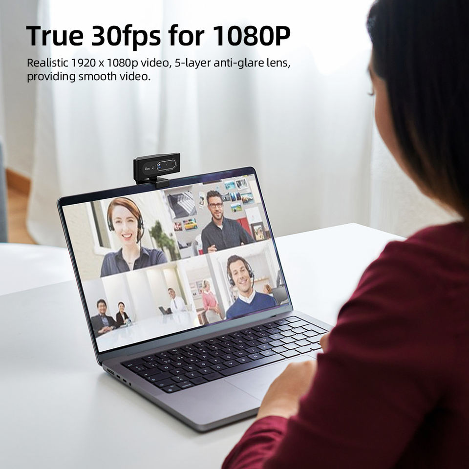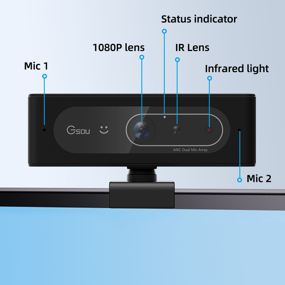 Cámara web HD de 1080P con Windows Hello, cámara web con reconocimiento facial, 2 millones de píxeles, cámara web USB con micrófono y obturador de privacidad