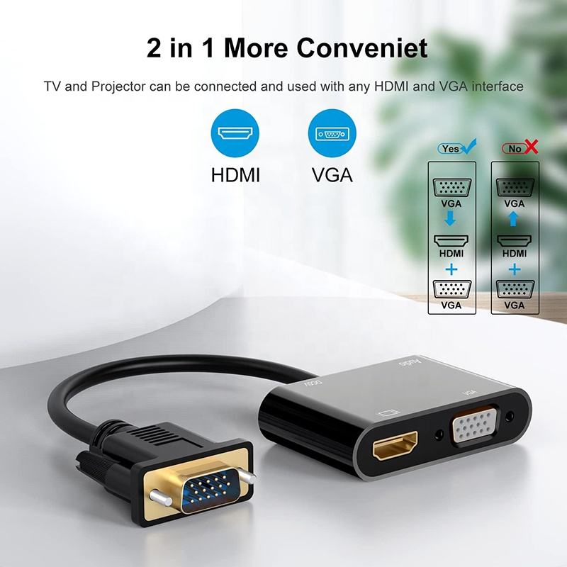 Cable Adaptador 2 en 1 VGA a HDMI