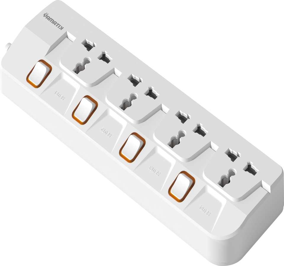 Regleta de 4 Tomas de Corriente de 10A, Serie BETA, de Alta Calidad, con Cobre y ABS, Cable de 5m, Interruptor LED de Sobrecarga, para Hogar y Oficina