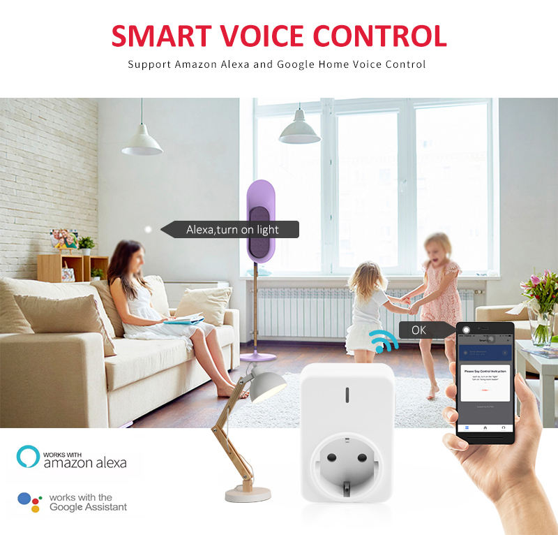 Enchufe Inteligente Wifi de 10A, Enchufe Europeo, Compatible con Alexa y Google, Enchufe de Viaje de Plástico