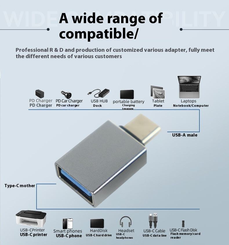 Nuevo Adaptador USB-C a USB 3.0 con Protección OTP para Transmisión de Datos de 10G para Laptop, Teléfono Móvil y LED