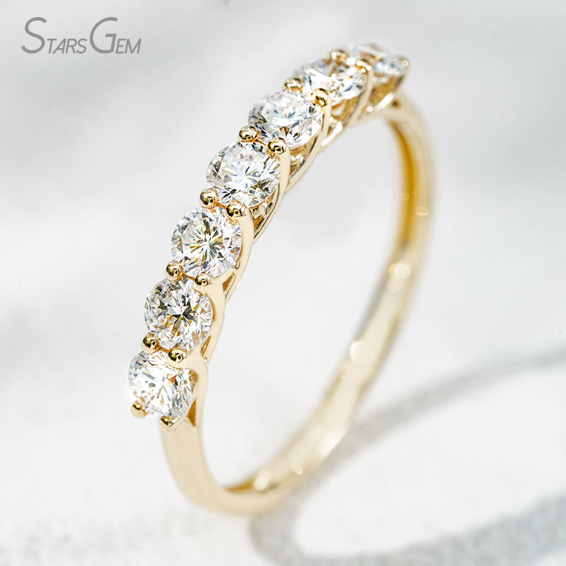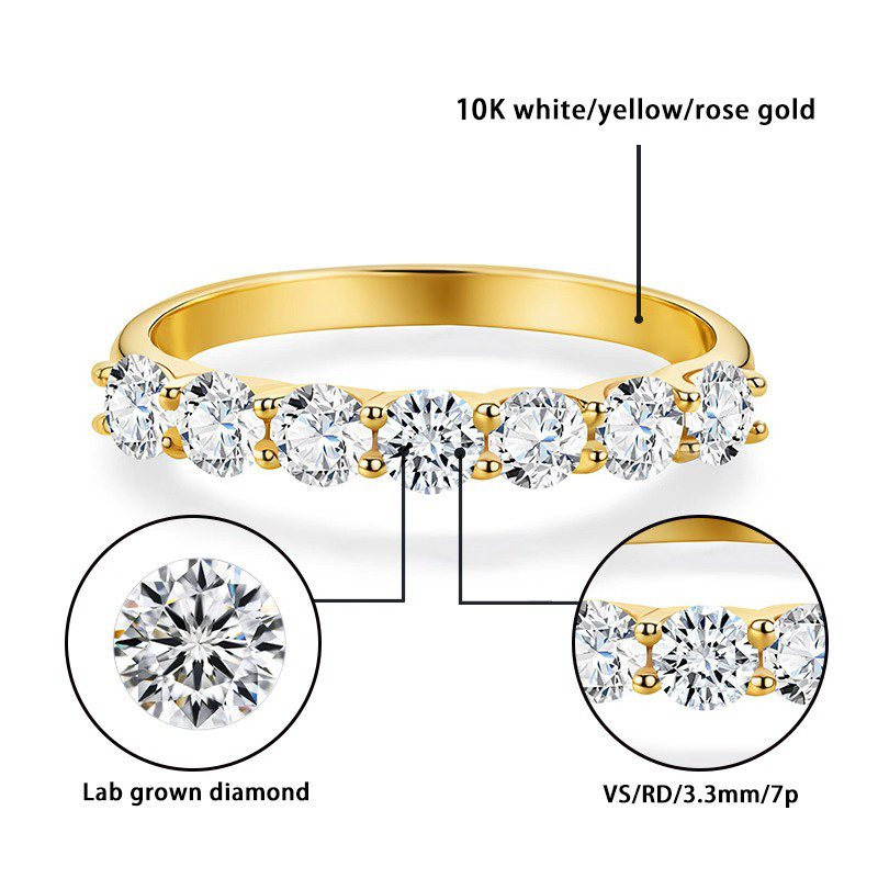 Anillo de Oro de 10K con Diamante de Laboratorio - Corte Redondo de 3.3mm, Estilo Siete Princesas, Diamante Amarillo y Blanco con Certificado IGI