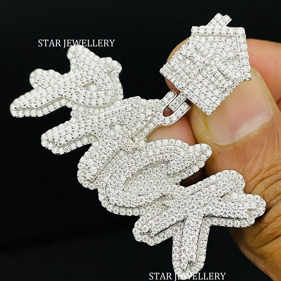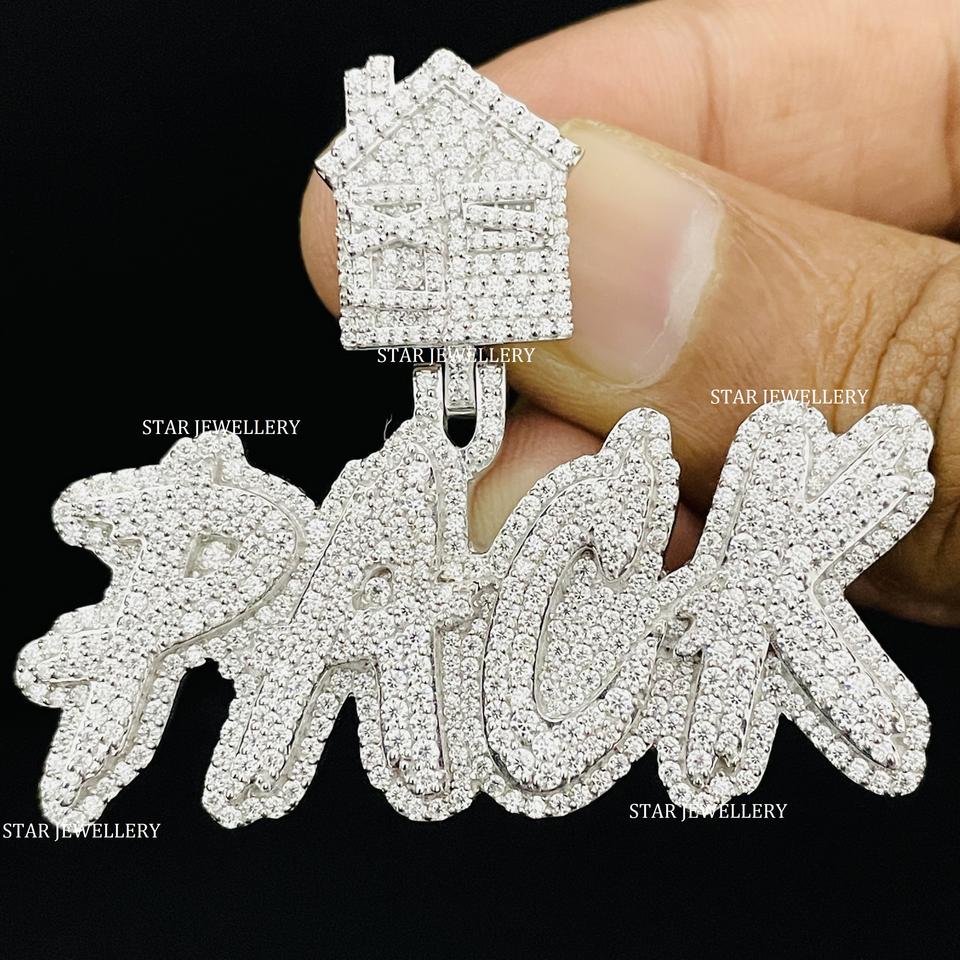 Colgante de Letra con Diamante Cultivado en Laboratorio, Corte Brillante Redondo, Chapado en Rodio sobre Oro de 10K, Estilo Cristiano, Unisex, Hiphop, Personalizado