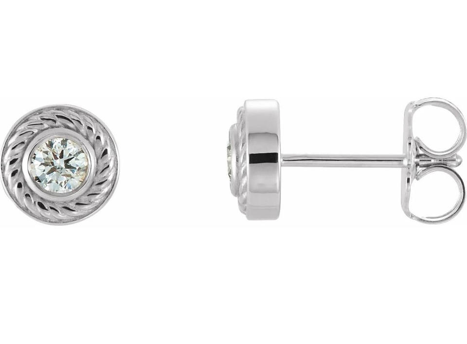 Pendientes de Oro de 10K con Diamantes Cultivados en Laboratorio de Corte Redondo y Halo con Diseño de Cuerda