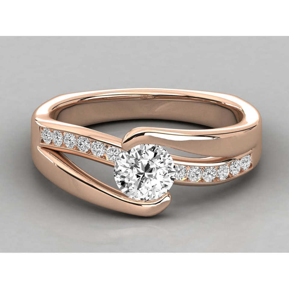 Anillo Solitario de Oro de 10K con Diamante Brillante Cultivado en Laboratorio