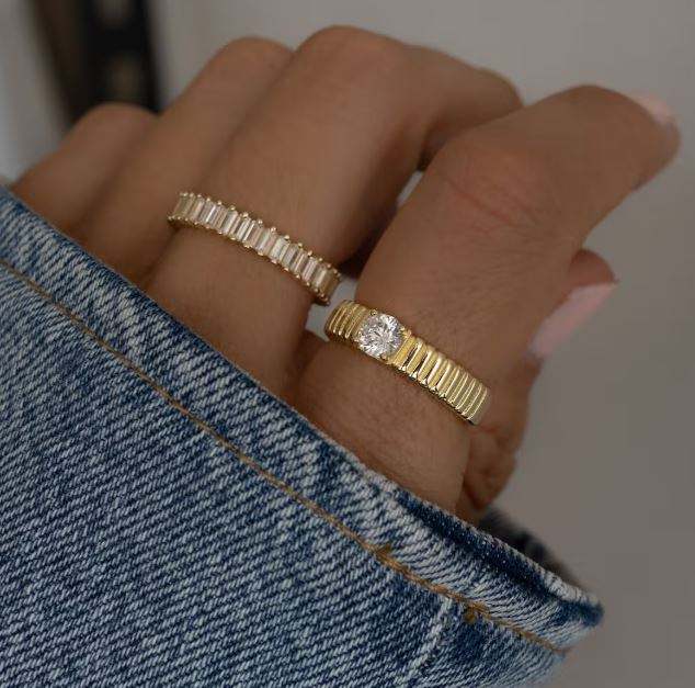 Nombre del producto:Anillo de boda minimalista fino de oro de 14 quilates o plata para apilar