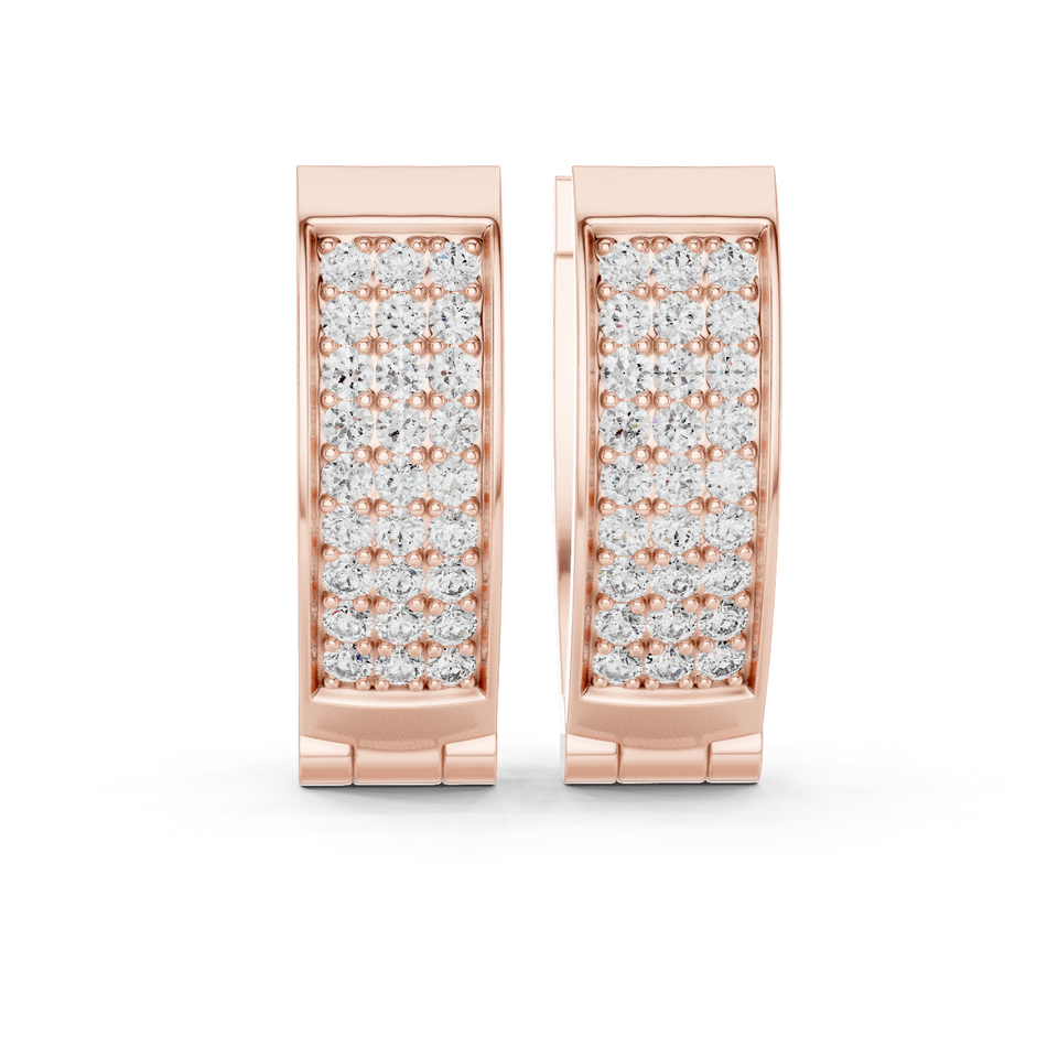 Pendientes de Aro Huggie de Oro Rosa de 10K con Diamantes Cultivados en Laboratorio de 0.54ct, Diseño Moderno de Varias Filas