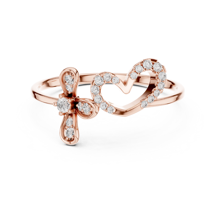Anillo de Compromiso de Lujo para Mujer con Diamante Cultivado en Laboratorio de Corte Redondo de 10K en Oro Rosa, con Corazón y Cruz, Menos de 1 Quilate