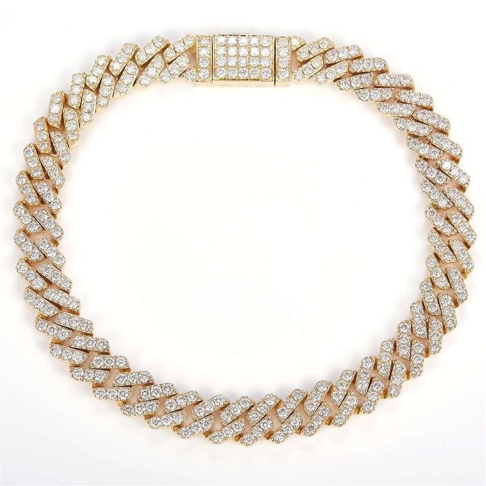 Pulsera de Oro Sólido de 10K con Baño de Rodio, Diseño de Eslabones Cubanos Cuadrados con Incrustaciones de Diamantes, Corte Brillante, Joyería de Lujo Unisex