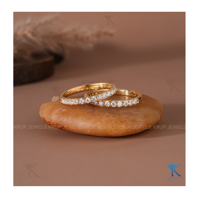 Anillo de media eternidad de oro macizo de 10K con diamantes redondos brillantes, anillo minimalista apilable, elegante anillo de boda para mujer