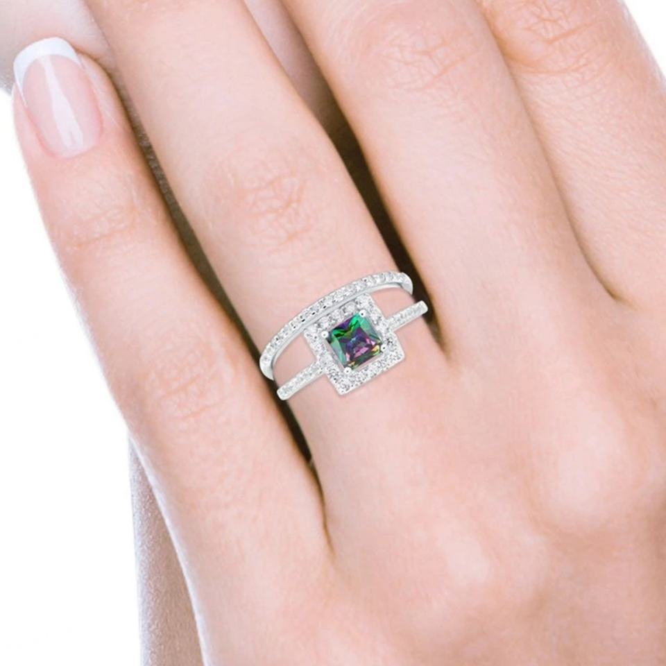 Anillo de topacio místico con corte princesa:Plata de ley 925