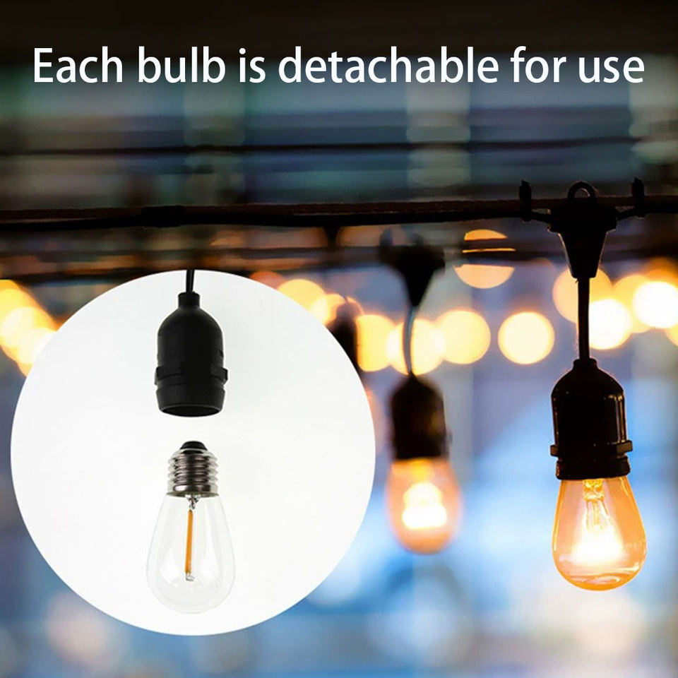 Cadena de luces solares LED de plástico S14 de 10 m para exteriores, con efecto secuencial, para Navidad, bodas, fiestas, eventos y decoración de jardín