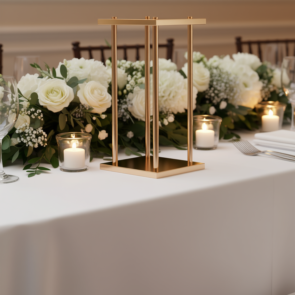Soporte de Flores de Columna Laminada en Metal Dorado de 23.62 Pulgadas, Centro de Mesa Moderno para Bodas
