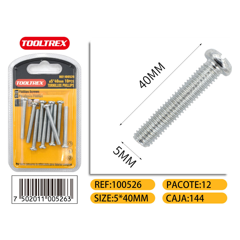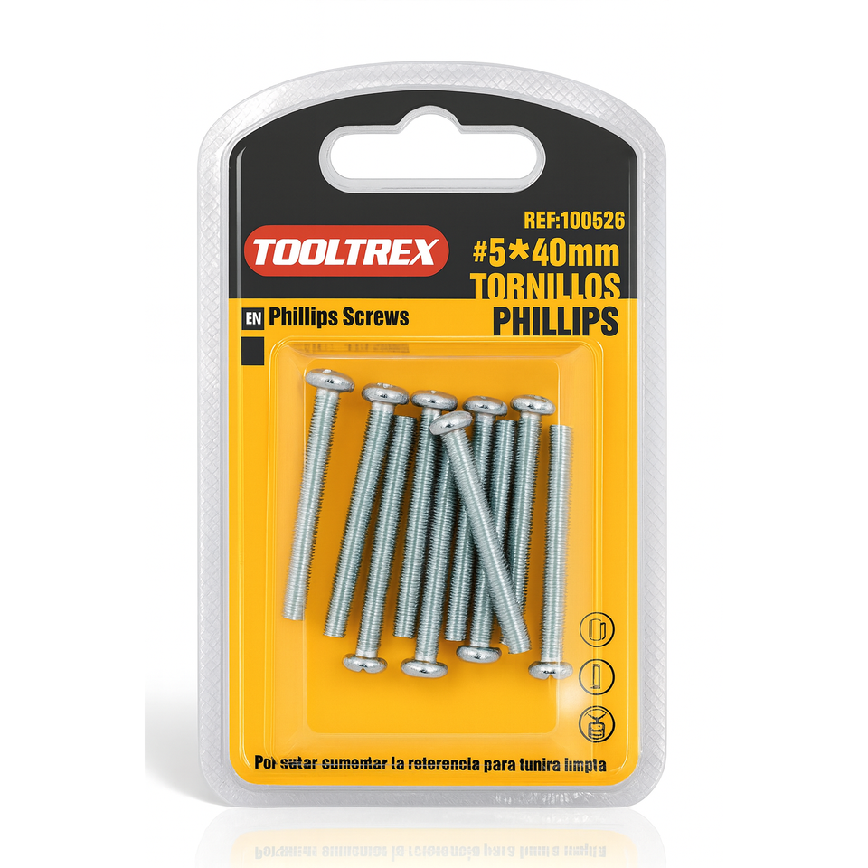 Tornillos de Cabeza Phillips de 5x40 mm, Paquete de 10 Piezas, Pernos de Acero Zincado para Madera, Metal, Muebles y Proyectos de Bricolaje