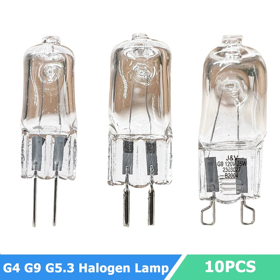 10 Uds G4 G9 lámpara halógena DC12V AC220V Mini 20W 3000K bombilla halógena blanca cálida 360 iluminación para decoración del hogar