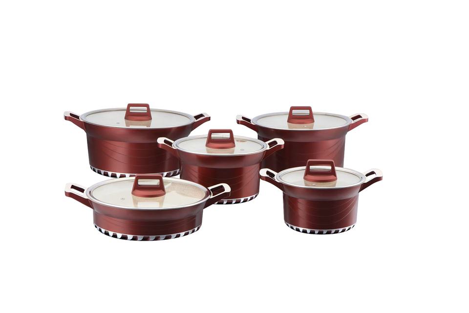 Juego de utensilios de cocina de estilo profundo de 10 Uds., cazuelas de aluminio fundidas a presión, ollas antiadherentes no tóxicas para una cocina saludable