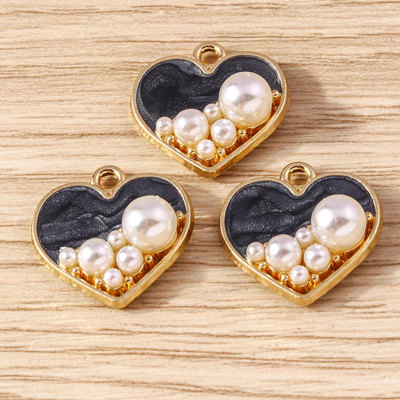 Lote de 10 Dijes de Corazón Esmaltados con Incrustaciones de Perlas, Colgantes de Amor para Manualidades, Accesorios para Llaveros, Suministros para Joyería, Paquete al por Mayor, Regalo