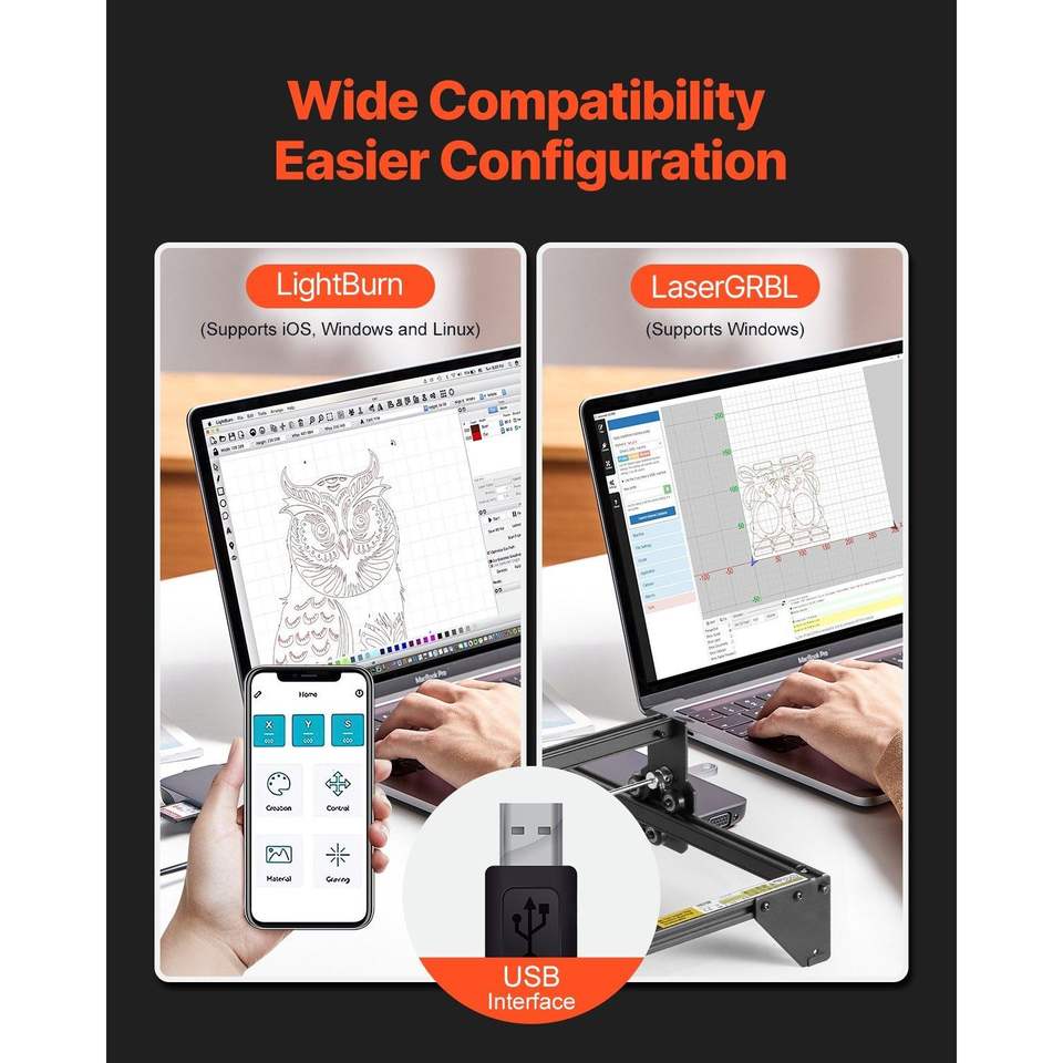 Máquina de Grabado y Corte Láser de 10W, Área de Trabajo de 14.9 X 15.7 Pulgadas, Velocidad de Movimiento de 10000 mm/min, Máquina de Grabado Láser de Alto Rendimiento
