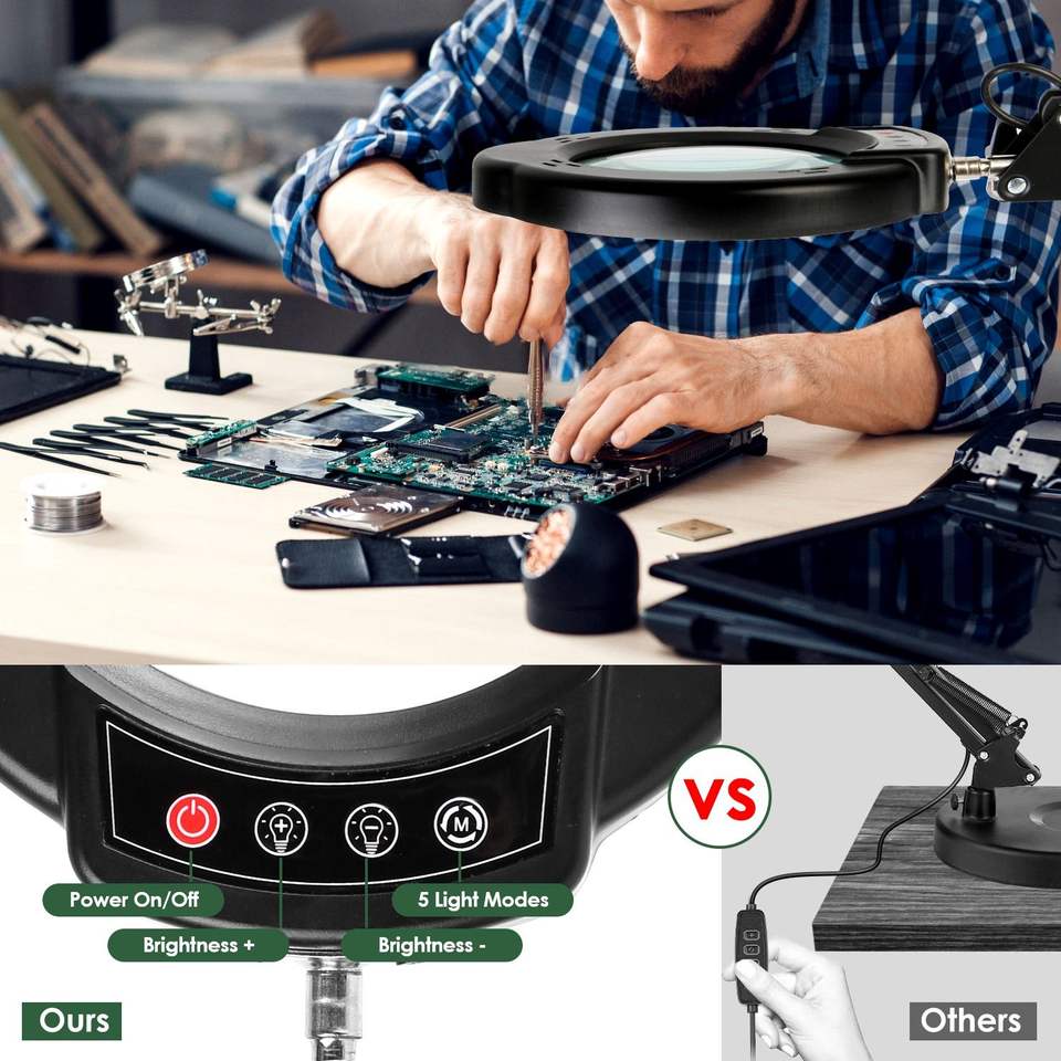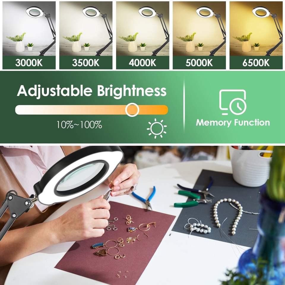 Lámpara de Escritorio con Lupa de 10X con Lente de Vidrio Real, con Luz y Soporte, Lámpara de Aumento Premium