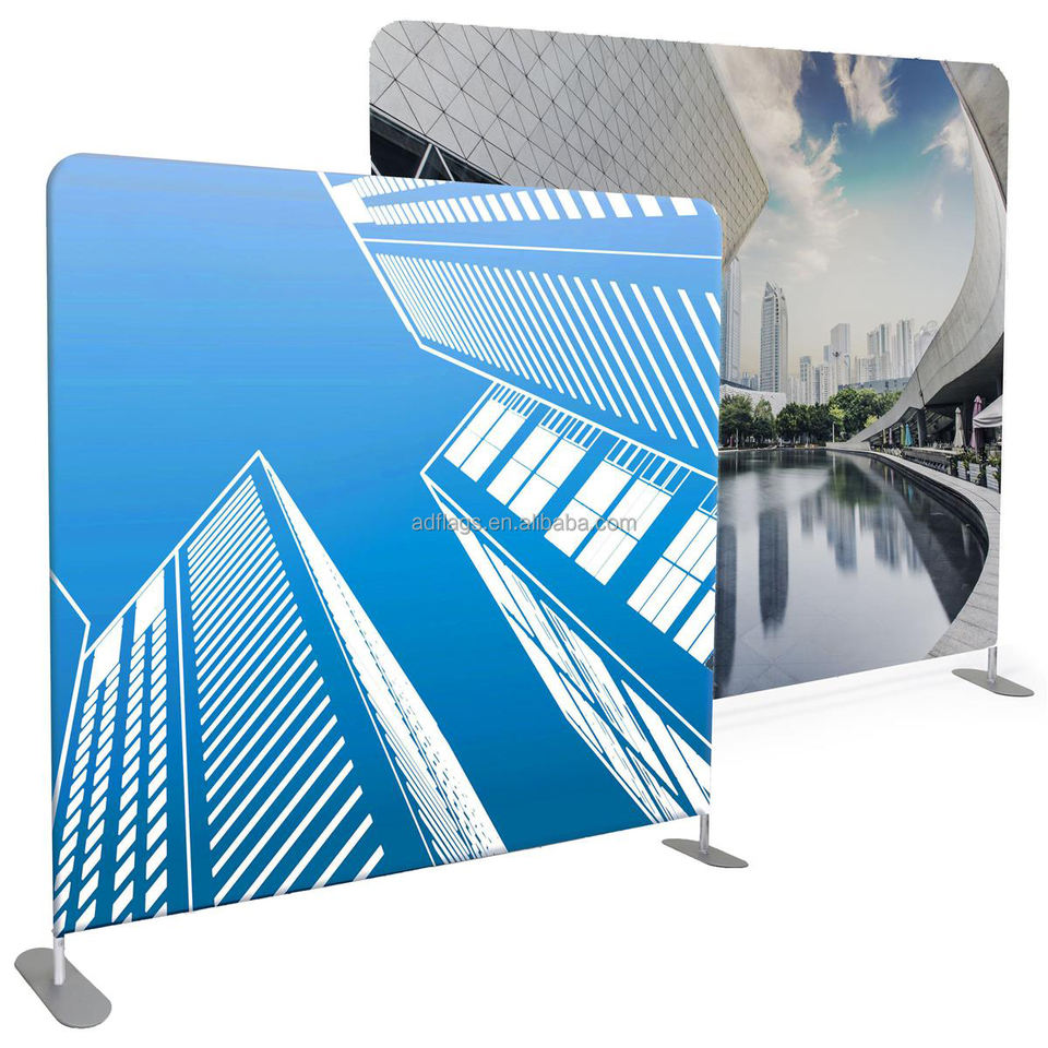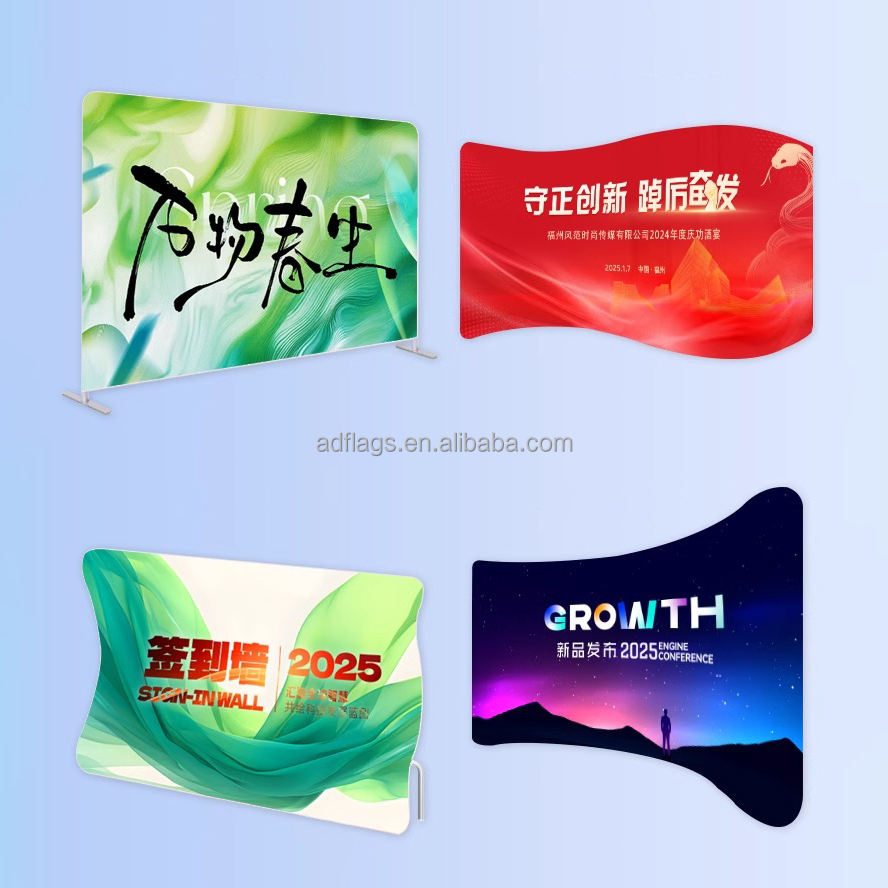 Expositores de Pared Plegables de Tela de Tensión de 10, 20, 30 Pies para Ferias Comerciales con Logo Personalizado Impreso y Fondos Publicitarios
