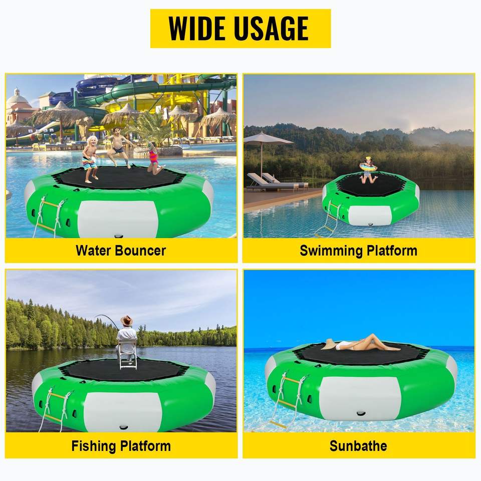 Trampolín Acuático Inflable Verde y Blanco de 3 Metros con Escalera, Brincolín Acuático Recreativo, Instalación de Entretenimiento Acuático