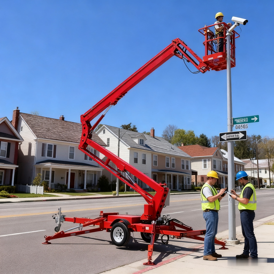 Plataforma de trabajo aéreo de 10m-45m, elevador de pluma articulada remolcable con batería eléctrica diésel a la venta