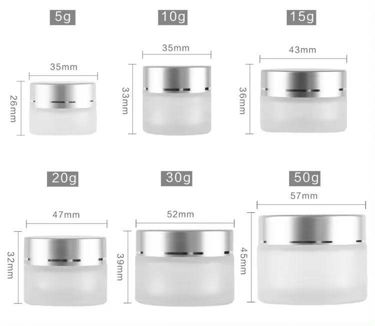 10ml 30ml 50ml 60ml 100mL redondo mate esmerilado cuerpo mantequilla cuidado de la piel crema cosmética tarros de vidrio con tapa de plástico plateado