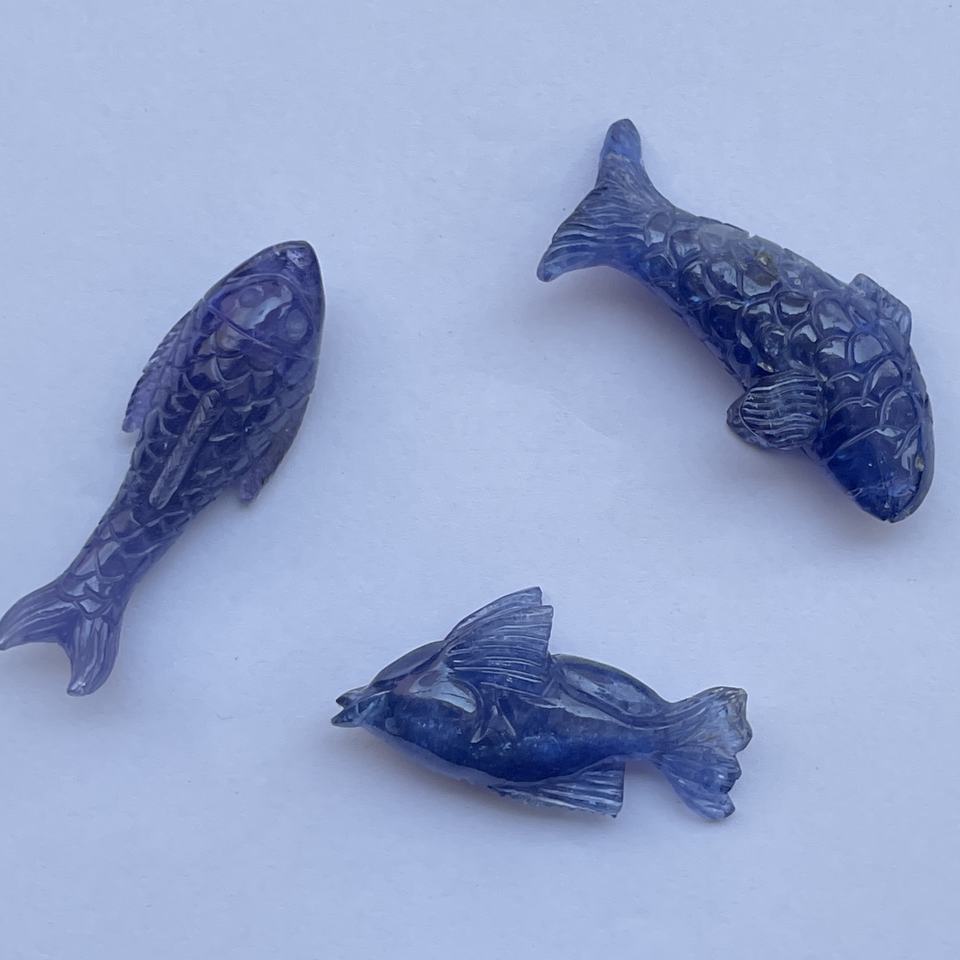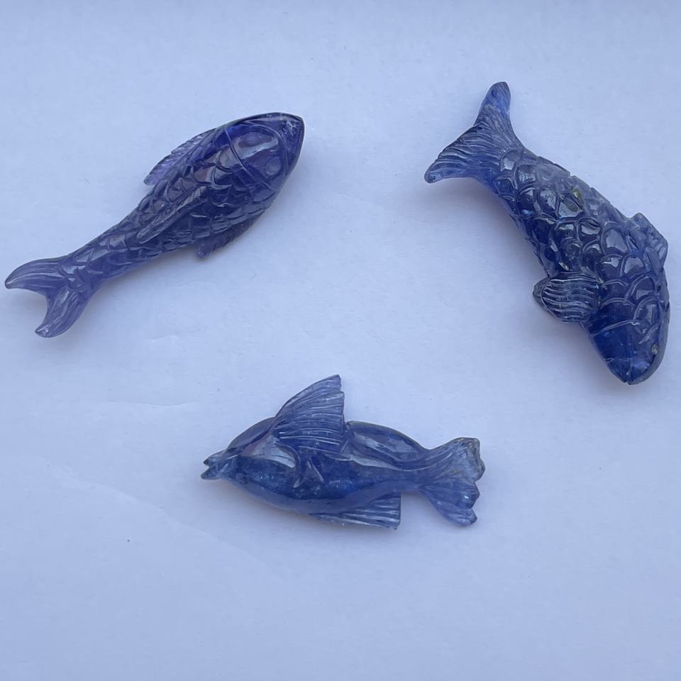Nombre del Producto:Piedra Natural de Tanzanita Azul con Forma de Pez y Talla Decorativa
