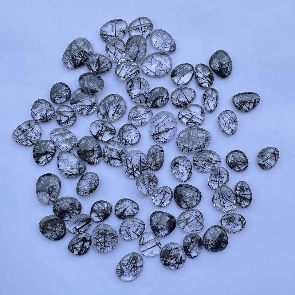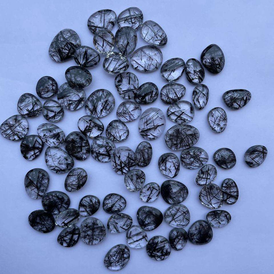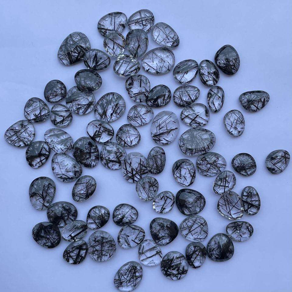Nombre del Producto:Cuarzo rutilado negro natural, talla libre, corte rosa, rodaja de polki