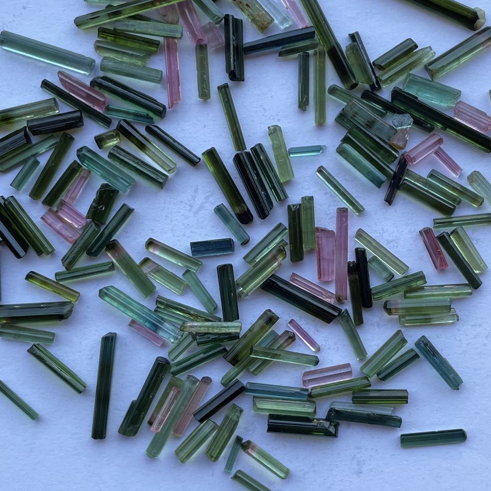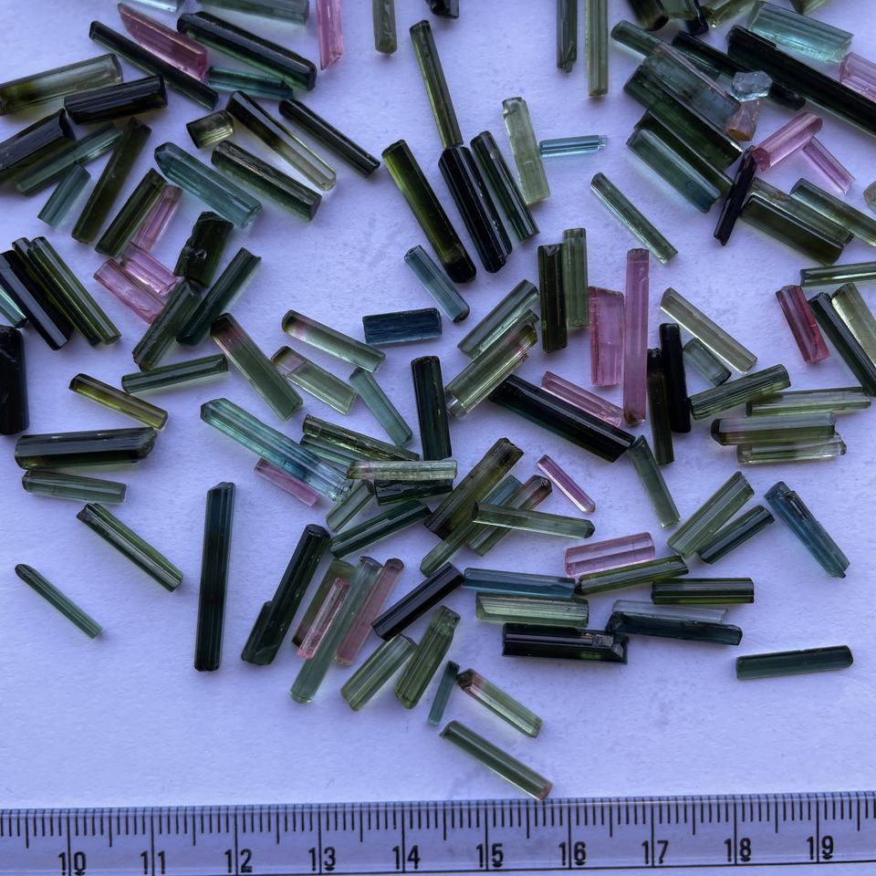 Nombre del Producto:Piedra natural de turmalina múltiple, forma de lápiz en bruto, piedra preciosa única