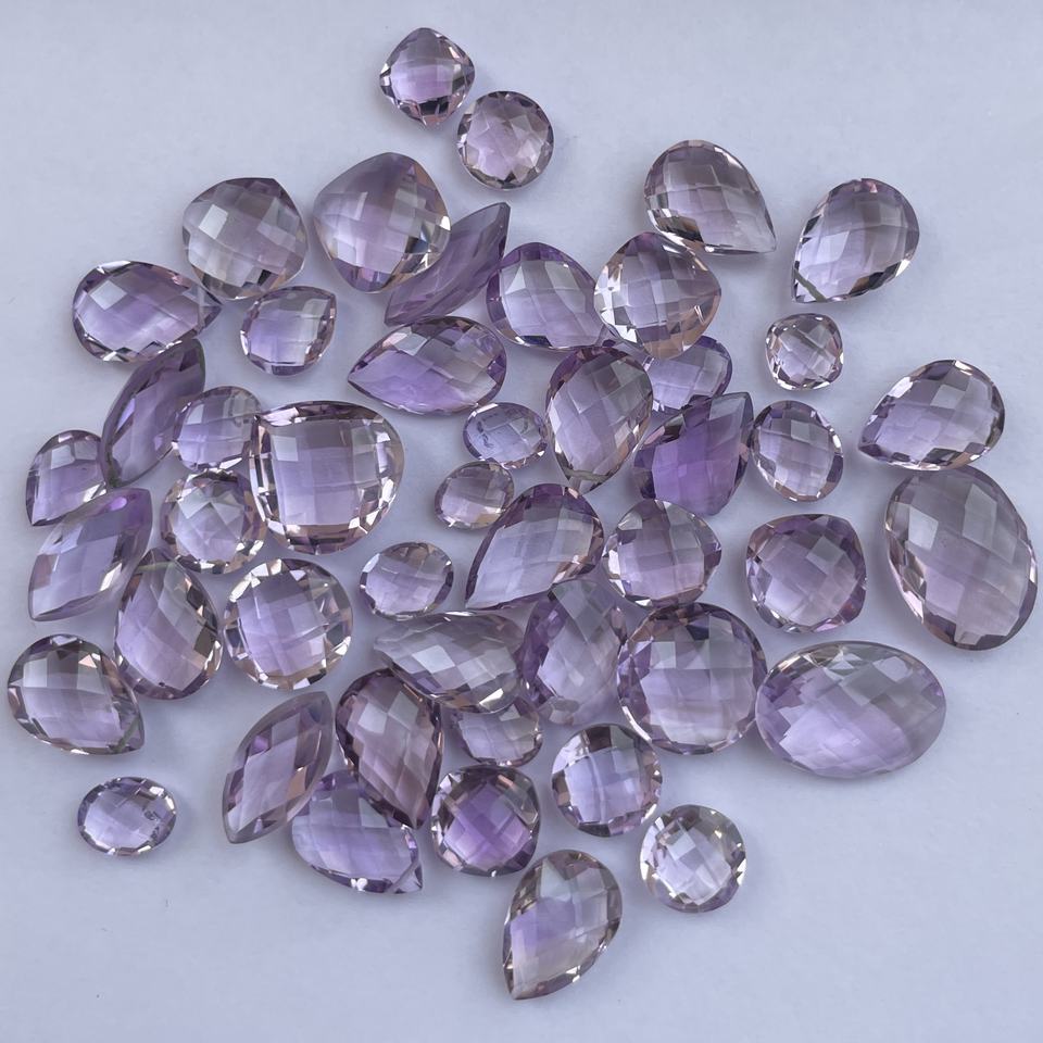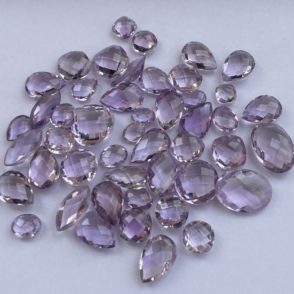 Nombre del Producto:Amatista Rosa, Corte Briolette, Tipo Cojín, Marquesa, Diseño Ajedrezado