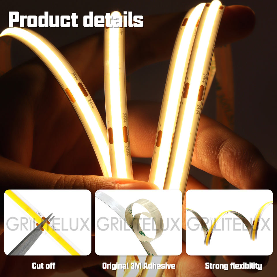 Tira de LED COB para PCB de 10 mm, 480 LED/m, 140 lm/W, Ahorro de Energía, 24 V, para Iluminación Arquitectónica de Paredes