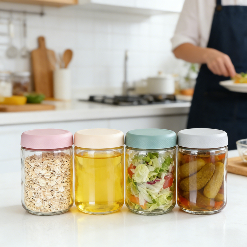 Frascos de Vidrio Apilables Ecológicos Clásicos de 10 oz (300 ml) con Tapas Herméticas para Almacenamiento en la Cocina, Granos de Café, Avena, Nueces, Miel