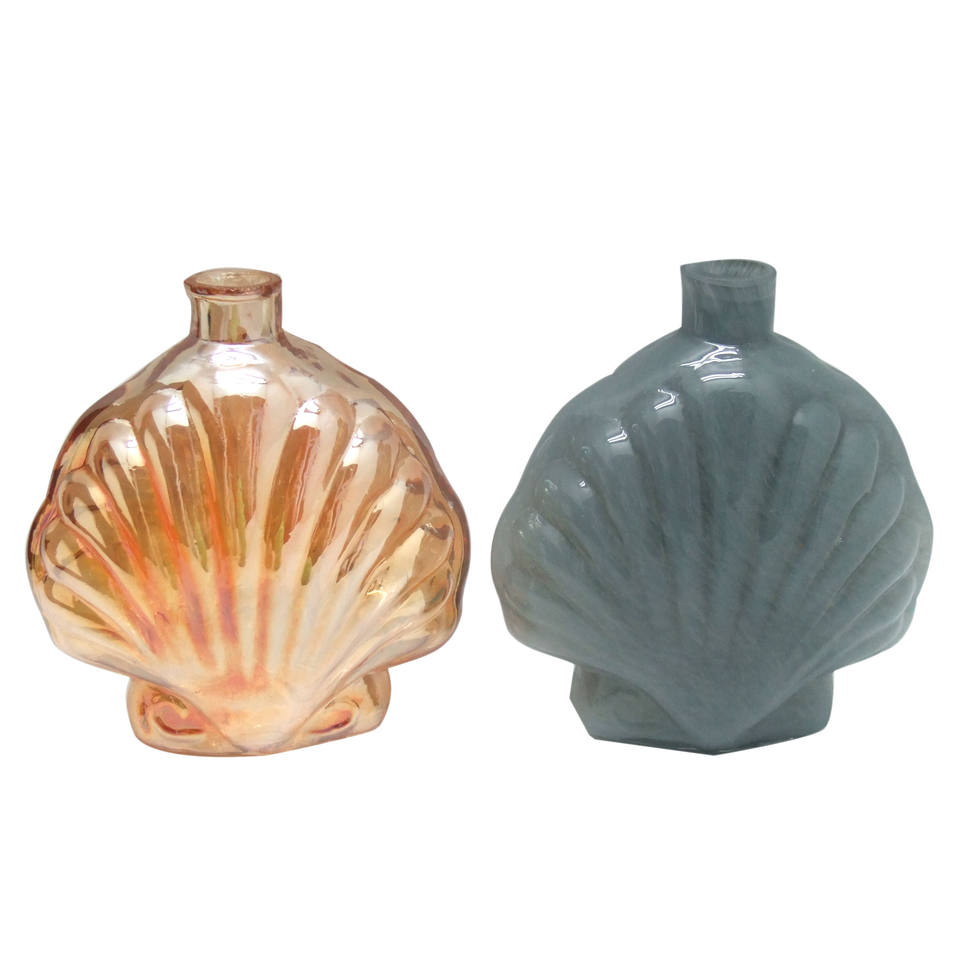 Botella de aromaterapia en forma de concha de Mar de 10oz, botella de vidrio difusora de caña con palitos de ratán HAODEXIN