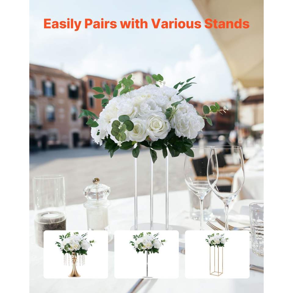 10 Piezas de Rosas Blancas de 17.7 Pulgadas de Diámetro, Centros de Mesa para Bodas, Arreglo de Ramo de Flores Artificiales, Rosas Artificiales de Aspecto Natural