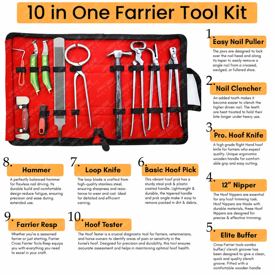 Nombre del producto:10PCs Farrier Hoof Grooming Herramientas DE CUIDADO DE ZAPATOS Instrumento veterinario