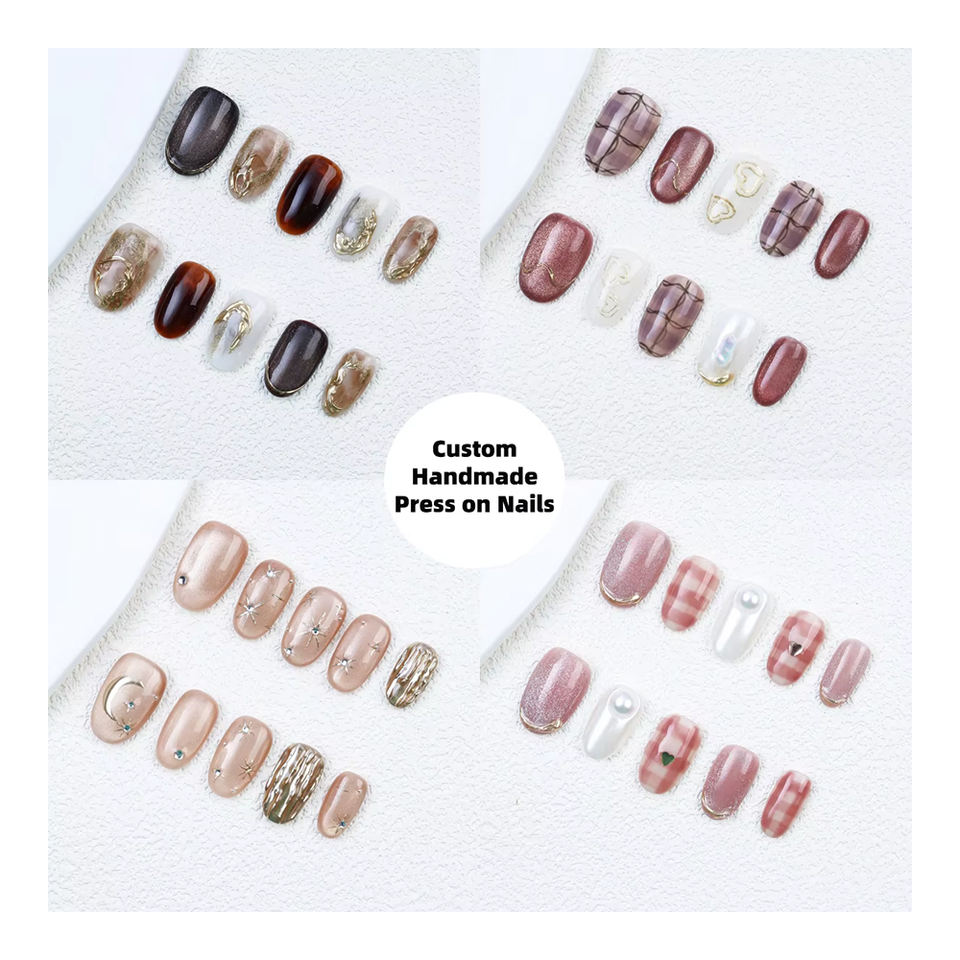 10 Uds alta calidad corto cuadrado redondo uñas postizas lindo Maillard perla flores diseño falso hecho a mano prensa en las uñas al por mayor