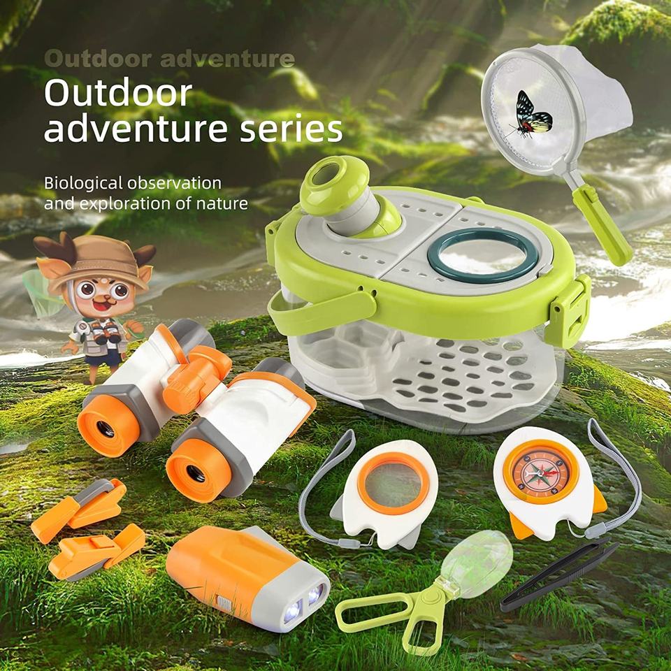 Kit de Juguetes para Niños para Atrapar Insectos, 10 Piezas, Ciencia Natural, Exploración al Aire Libre, Juguete para Insectos, Caja de Observación de Insectos con Binoculares y Brújula