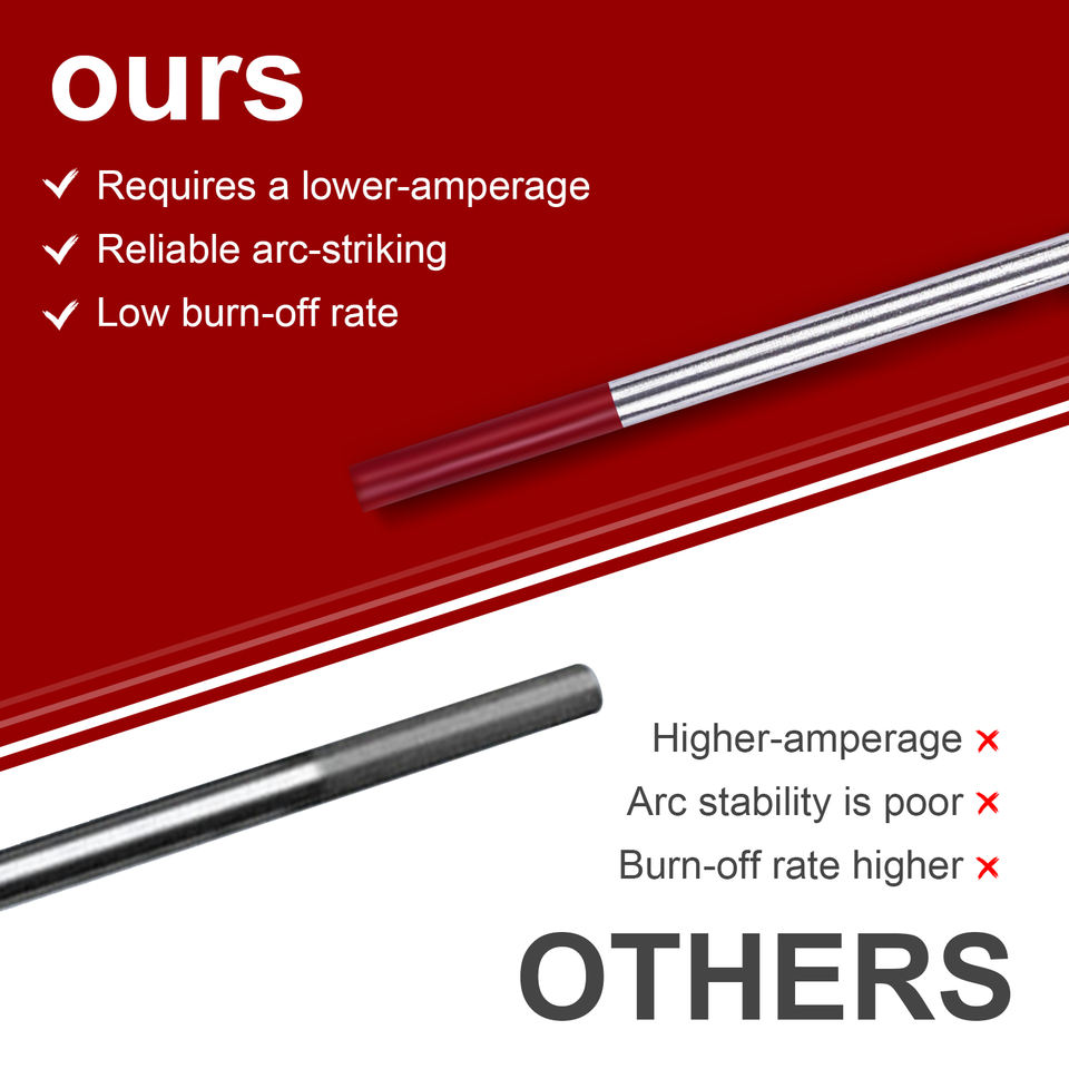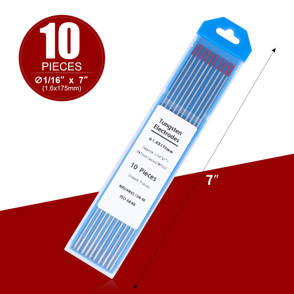10 unidades de aguja de tungsteno con cabeza roja de 150 mm, código de color rojo, para electrodos de tungsteno y torio